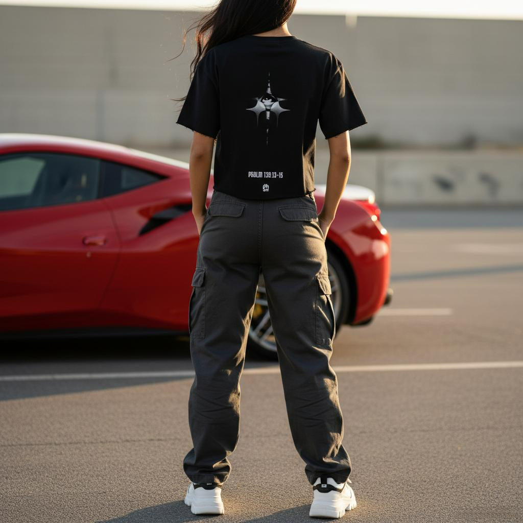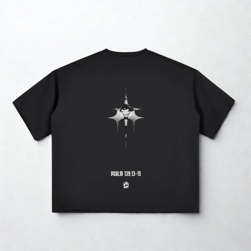 A minimalist front keeps the focus inward, while the back graphic serves as a reminder of divine intention — unseen, intentional, unshakable.